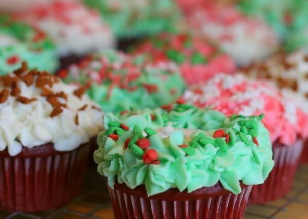 It looks kind of dull, plain like this, but add those holly berries and it's now my favorite of all the cupcakes we made.